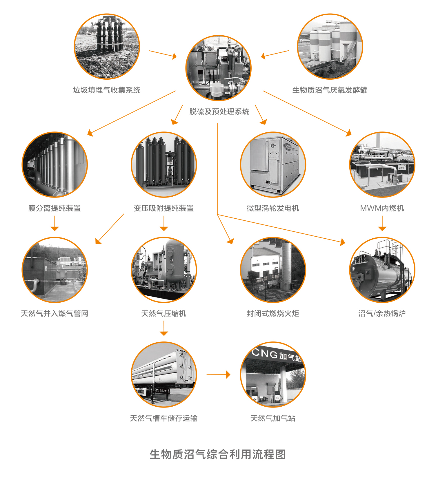 吉成環(huán)境專業(yè)承接沼氣收集、脫硫凈化、燃燒和沼氣發(fā)電、沼氣提純等系統(tǒng)工程,提供從沼氣收集-氣體凈化提純-生物天然氣加氣站建設運行的全流程解決方案,用先進的技術幫助企業(yè)解決環(huán)境污染和能源利用問題,降低運營成本,提高經(jīng)濟效益。除提供生物質(zhì)沼氣資源化利用解決方案外,還以EPC、BOT、BOO、BT的商業(yè)模式參與生物質(zhì)沼氣的開發(fā)利用。
